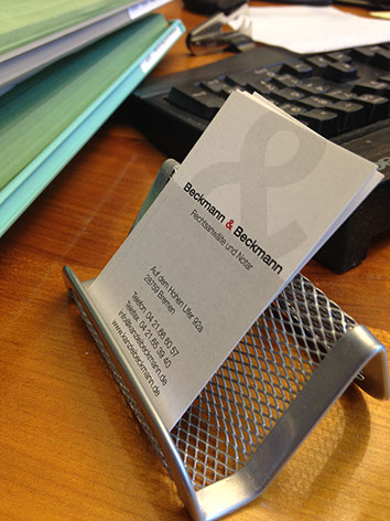 Die Rechtsanwälte der Kanzlei sind nach dem Recht der Bundesrepublik Deutschland zugelassen und Mitglieder der Hanseatischen Rechtsanwaltskammer in Bremen, Knochenhauer Straße 36/37, 28195 Bremen. Herr Rechtsanwalt Beckmann ist in seiner Eigenschaft als Notar Mitglied der Bremer Notarkammer.
